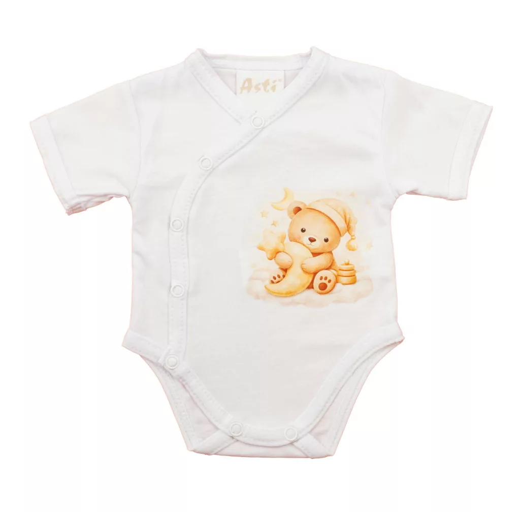 Rövid ujjú elöl patentos baba body Ez a rövid ujjú baba body vidám mintájával azonnal feldobja a kis lurkó napját. Készült a legpuhább, 100% pamut anyagból, hogy garantáltan kényelmes legyen a viselése, akár egész nap. Az elöl található praktikus patentok egyszerűbbé teszik a pelenkázást és a öltöztetést. Nikkelmentes kialakításának köszönhetően pedig az érzékeny bőrű babák is nyugodtan hordhatják. Minőségi magyar termék, mely a legjobb választás a kisbabád számára. A cuki minta mellett nem lehet elmenni szó nélkül. Ne hagyd ki ezt a darabot, amely tökéletesen illik a babagardrób minden részéhez! Minőségi magyar termék Anyaga: 100% pamut, Minőség: I. osztály
