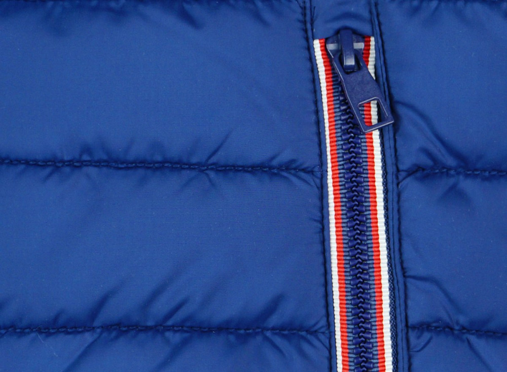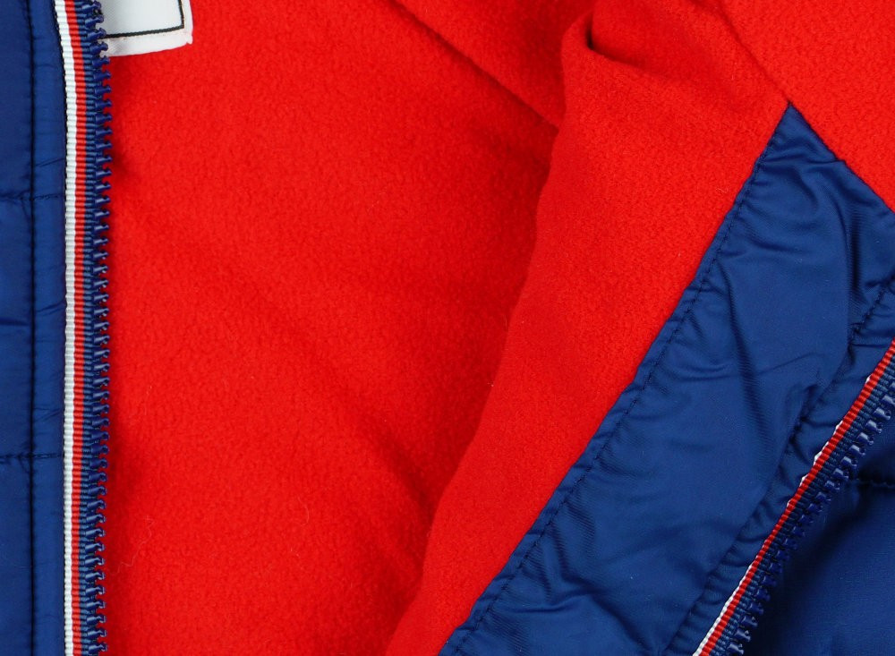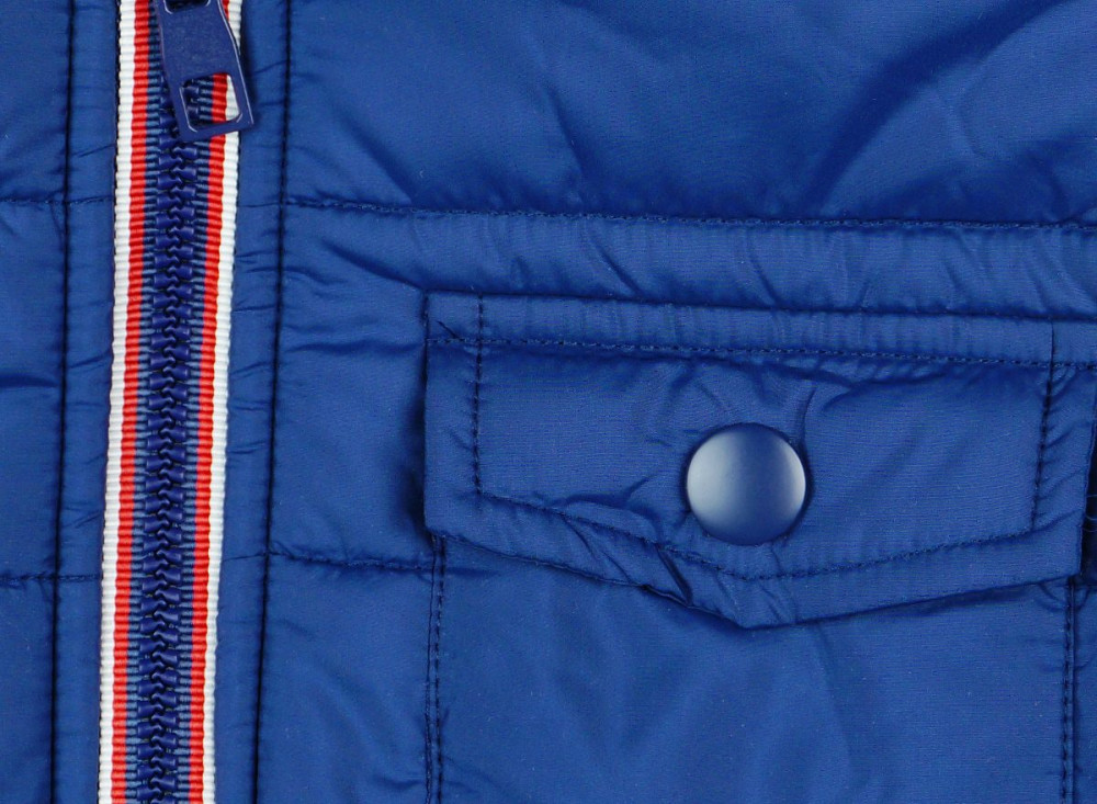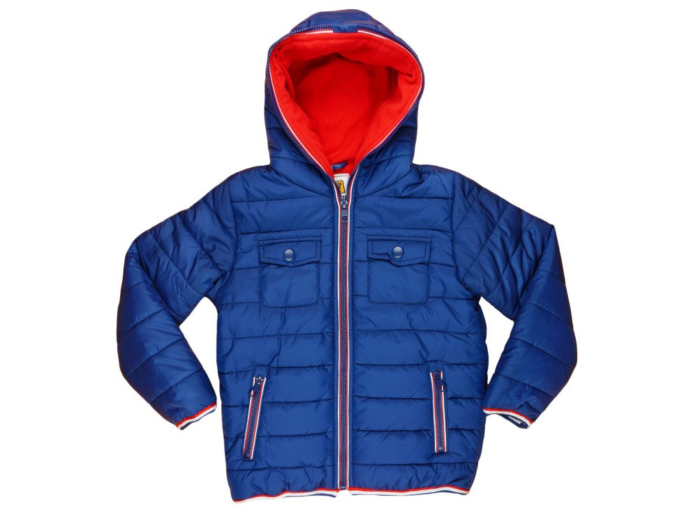Bélelt, kapucnis, az ujjánál passzés, zsebekkel ellátott fiú télikabát