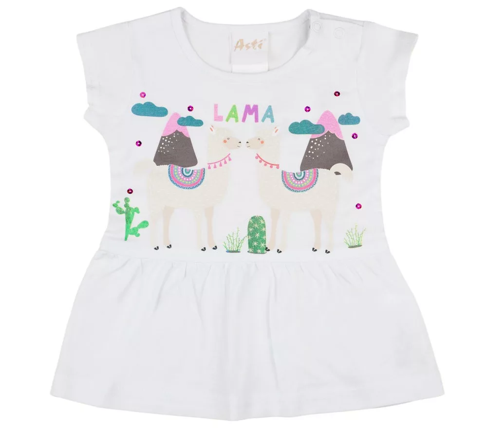 Láma mintás kislány bébi rövid ujjú ruha flitterrel