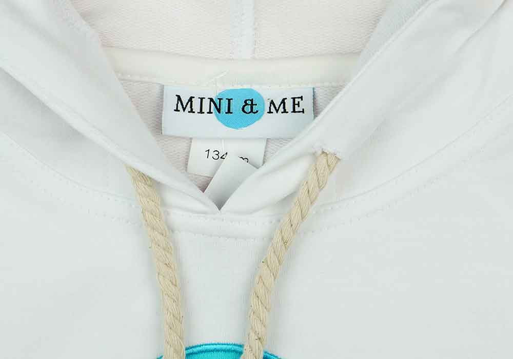 Kényeztesd kislányodat ezzel a hosszú ujjú, kapucnis pulcsival, ami tökéletes választás a hűvösebb napokra. A rövid állású kialakításának köszönhetően a hasat szabadon hagyja, így extra kényelmes viseletet biztosít. A kapucni és az alsó passzé kötővel ellátott, ami praktikus és divatos kiegészítője a pulcsinak. A fehér színű ruhadarabon elöl a Mini&Me hímzés látható, ami szuper cuki megjelenést kölcsönöz neki. A pulcsi 100% pamutból készült, ami garantálja, hogy lányod bőre szabadon lélegezzen viselése közben. Ez a minőségi magyar termék az I. osztályba tartozik, ami a legmagasabb minőséget jelzi.