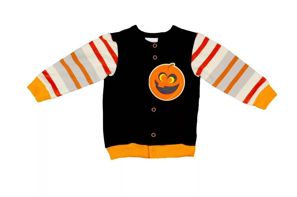 Öltöztesse be a kicsit a Halloween szellemébe ezzel a mókás tökös babakardigánnal! A kényelmes, vékony pamut anyagból készült kardigán elején végig patentokkal van ellátva, így könnyedén feladható és leválasztható. A fekete alapszín és a vidám tök minta tökéletesen illik a Halloween hangulatához, de még a hideg őszi napokon is jól fog mutatni. Minőségi magyar termék, melyben a kicsi egész nap kényelmesen tud mozogni. Anyaga: 90% pamut, 10% elasztán - ez a kombináció biztosítja a ruha tartósságát és rugalmasságát, míg a bőr légzését is lehetővé teszi. Minőségi osztály: I. osztály.