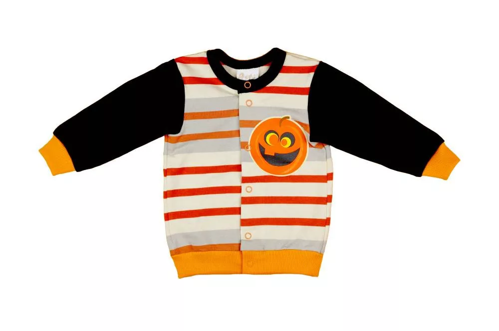 Bűbájos Halloween hangulatba hozza kisfiadat ez a csíkos, tök mintás kardigán. Kézzel készült Magyarországon, ami garantálja a minőséget és az egyediséget. A lenyűgöző design mellett a kényelem is kiemelt szerepet kapott: a vékony, 90% pamutból és 10% elasztánból készült anyag puha, rugalmas és lélegző, így a kisfiad egész nap kényelmesen fogja érezni magát benne. A kardigán elején végig patentos, így könnyen fel-és le lehet venni. Ezzel a kardigánnal a Halloween mindennapossá válik! Minőségi I.osztályú termék.