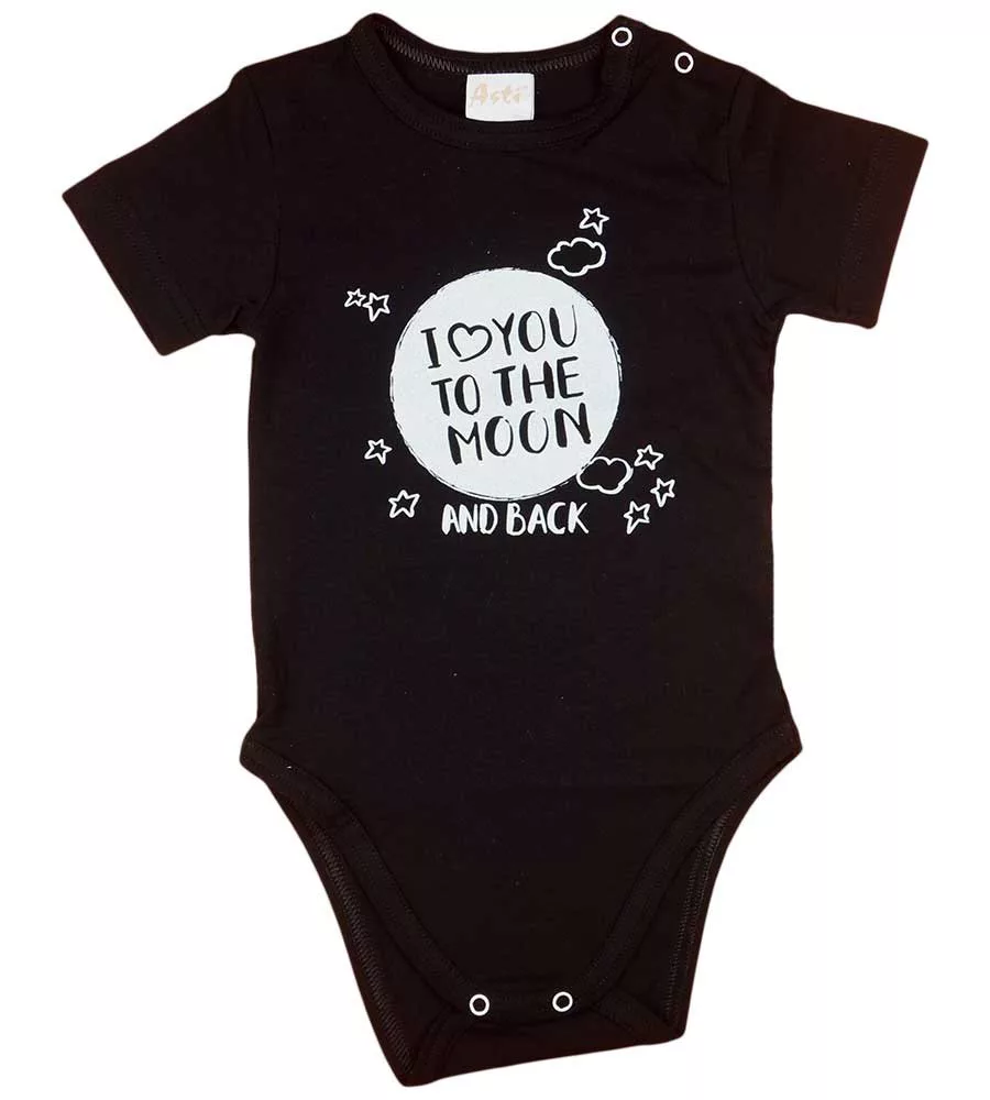 "I love you to the moon and back" feliratos rövid ujjú baba body fekete
