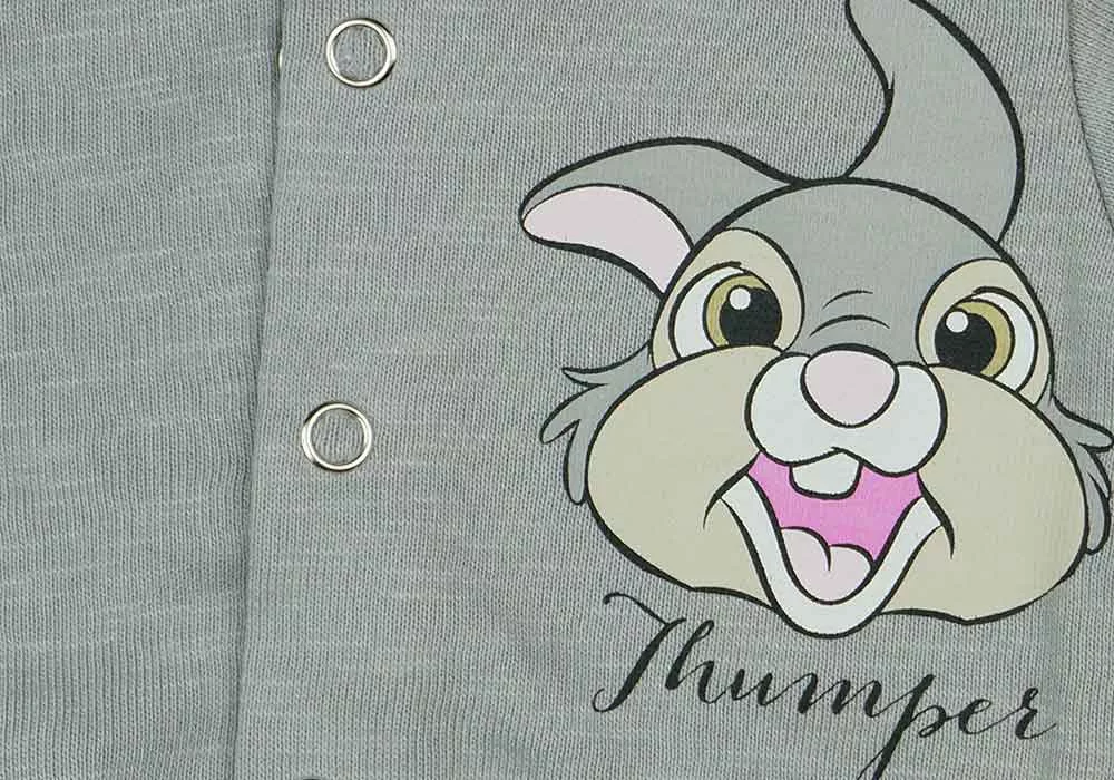 Öltöztesse babáját ebben a bájos, szürke színű kocsikabátban, melyen a kedves Thumper nyuszi mintája díszeleg! Ez a kocsikabát nem csak stílusos és játékos, de praktikus is, hiszen elöl patentos kialakítása révén könnyedén fel- és le lehet venni. A kabát anyaga 100% pamut, amely garantálja a kényelmet és a puhaságot, így a kis nyüzsgők is szeretni fogják viselni. Ráadásul ez a minőségi, magyar termék nikkelmentes patenttal készült, így az erre érzékeny babák sem fognak allergiás reakciót tapasztalni. Tegye mindennapjaikat vidámabbá ezzel a Thumper nyuszi mintával díszített kocsikabáttal, ami egy igazi, eredeti Disney termék.