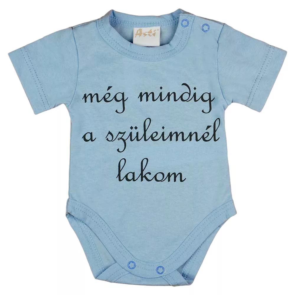 Rövid ujjú "még mindig a szüleimnél lakom" feliratos baba body