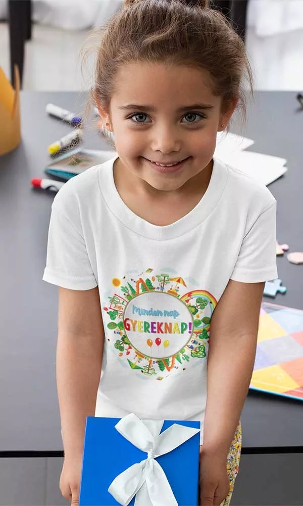 Ha nálatok is mindennap gyereknap, akkor ez a póló tökéletes választás! Az uniszex fehér póló vidám Gyereknapos felirattal díszítve garantáltan mosolyt csal a kicsik arcára. A pólót minőségi pamutból készítettük, hogy biztosítsuk a gyerkőcök kényelmét és a hosszútávú tartósságot. Egész évben hordható, hiszen könnyen kezelhető, szín- és formatartó anyagból készült, így a játék közben sem veszít formájából. Büszkék vagyunk rá, hogy ez a termék 100% magyar munka eredménye, így a vásárlással a hazai gyártást is támogatod. Minősége első osztályú, mert a legkisebbeknek csak a legjobbat szánjuk!