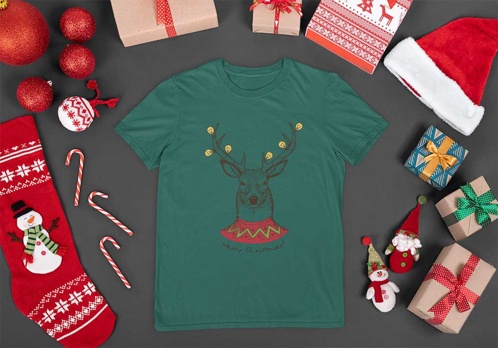 Rövid ujjú férfi póló karácsonyi mintával