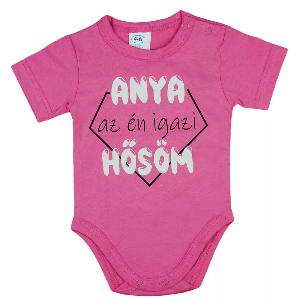 Rövid ujjú baba body "Anya az én igazi hősöm" felirattal
