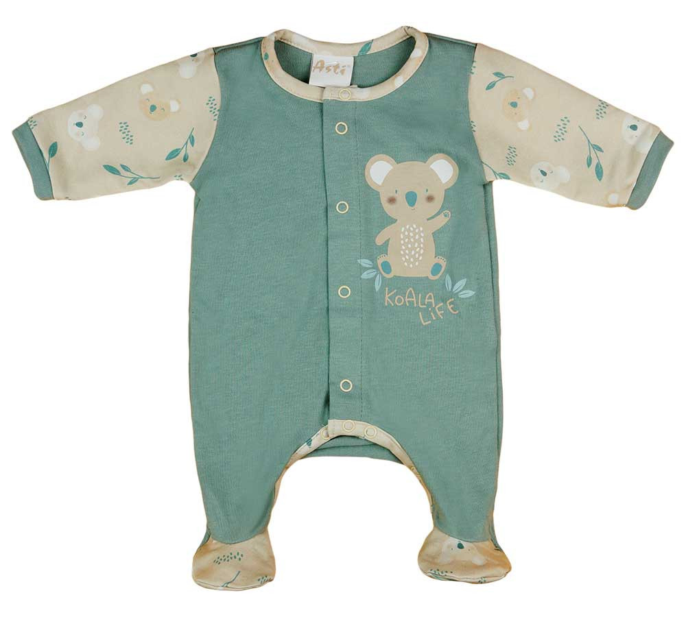 Öltöztesse kisbabáját ebbe a kedves zöld hosszú ujjú rugdalózóba, melynek elbűvölő koalás mintája van! Ez a rugdalózó uniszex, így tökéletes választás lehet kisfiú vagy kislány számára egyaránt. Kiváló minőségű magyar termék, melyet a Andrea Kft. készített. A rugdalózó anyaga 90% pamut és 10% elasztán, amely biztosítja a kényelmet és a tartósságot. Az elöl lévő patentok segítségével könnyedén fel- és le lehet venni a ruhát a babáról. Figyelembe véve az érzékeny bőrű babákat, a termék nikkelmentes patenttal készül, így nem vált ki allergiás reakciót. Tegye még kényelmesebbé és vidámabbá babája napjait ezzel a szuper koalás rugdalózóval!