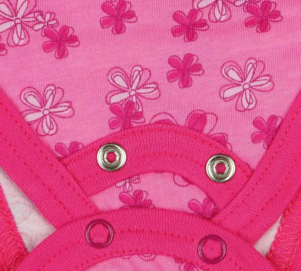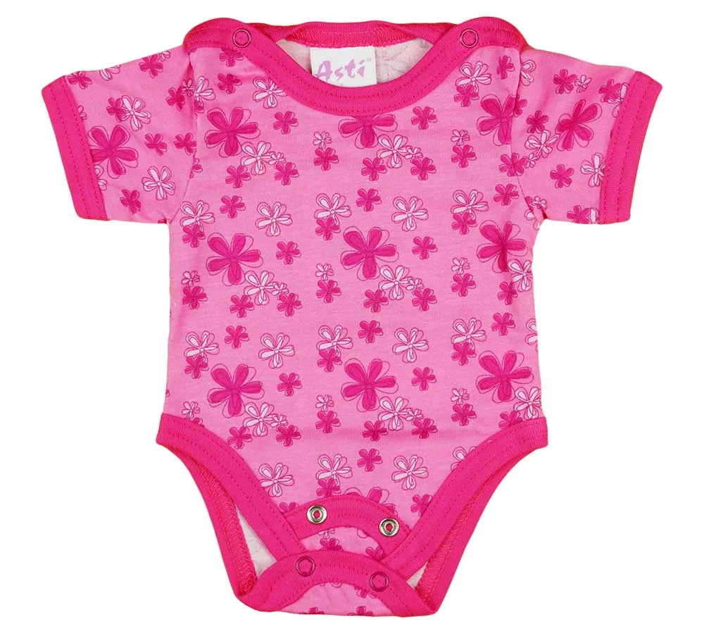 Édes mintás, rövid ujjú baba body, mely a baba növekedésével együtt alakul. Mindkét vállnál és alul dupla patenttal rendelkezik, így könnyedén állítható a méret. Az 100% pamut anyagának köszönhetően, puha és kényelmes viseletet biztosít a kicsiknek. Magyarországon készült, I. osztályú minőségi termék, a babák bőrének védelme érdekében nikkelmentes patenttal ellátva, mely nem vált ki allergiás reakciót. Andrea Kft. terméke.