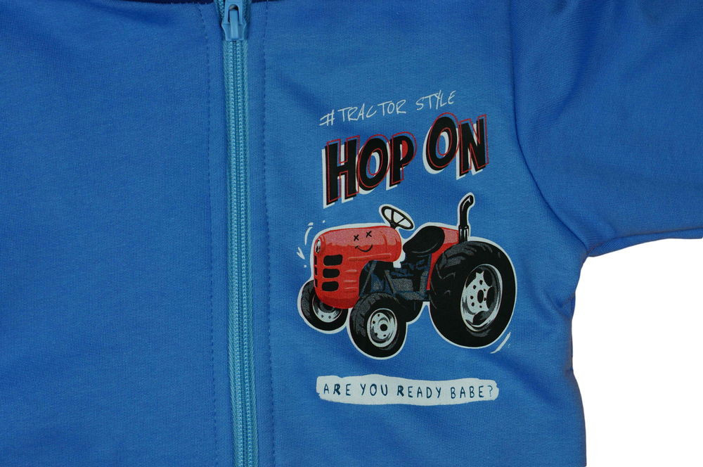 Fedezd fel a hűvös időjárást ezzel a belül bolyhos fiú szabadidő szettel, amely traktoros mintával díszített. A kék színű, két részes szett tökéletes választás az őszi és téli hónapokra, köszönhetően a belül bolyhos pamut anyagnak, mely extra meleget és kényelmet nyújt a legkisebbeknek. A felső rész cipzárvédővel készült, így nem irritálja a gyermek nyakát, míg a nadrág gumis derékkal és két zsebbel rendelkezik a könnyű viselhetőség és praktikum érdekében. A szett darabjai együtt és külön is hordhatóak, így változatos öltözködési lehetőséget biztosítanak. Ez a minőségi magyar termék 100% pamutból készült, így biztosítva a tartósságot és a puhaságot. A gyermeked imádni fogja ezt a stílusos és kényelmes szettet, ami a ruhatárának új kedvenc darabja lesz! Mert a minőség nemcsak I. osztályú, hanem elengedhetetlen is.