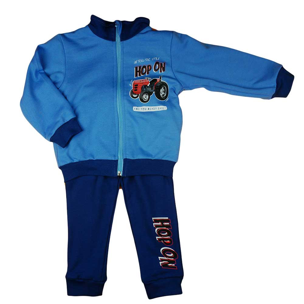 Fedezd fel a hűvös időjárást ezzel a belül bolyhos fiú szabadidő szettel, amely traktoros mintával díszített. A kék színű, két részes szett tökéletes választás az őszi és téli hónapokra, köszönhetően a belül bolyhos pamut anyagnak, mely extra meleget és kényelmet nyújt a legkisebbeknek. A felső rész cipzárvédővel készült, így nem irritálja a gyermek nyakát, míg a nadrág gumis derékkal és két zsebbel rendelkezik a könnyű viselhetőség és praktikum érdekében. A szett darabjai együtt és külön is hordhatóak, így változatos öltözködési lehetőséget biztosítanak. Ez a minőségi magyar termék 100% pamutból készült, így biztosítva a tartósságot és a puhaságot. A gyermeked imádni fogja ezt a stílusos és kényelmes szettet, ami a ruhatárának új kedvenc darabja lesz! Mert a minőség nemcsak I. osztályú, hanem elengedhetetlen is.