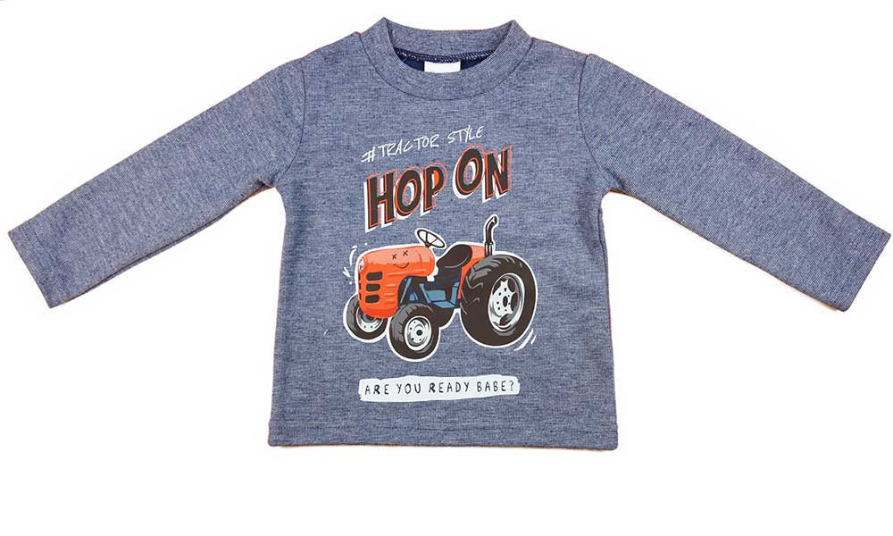 Hosszú ujjú belül bolyhos kisfiú póló traktoros mintával
