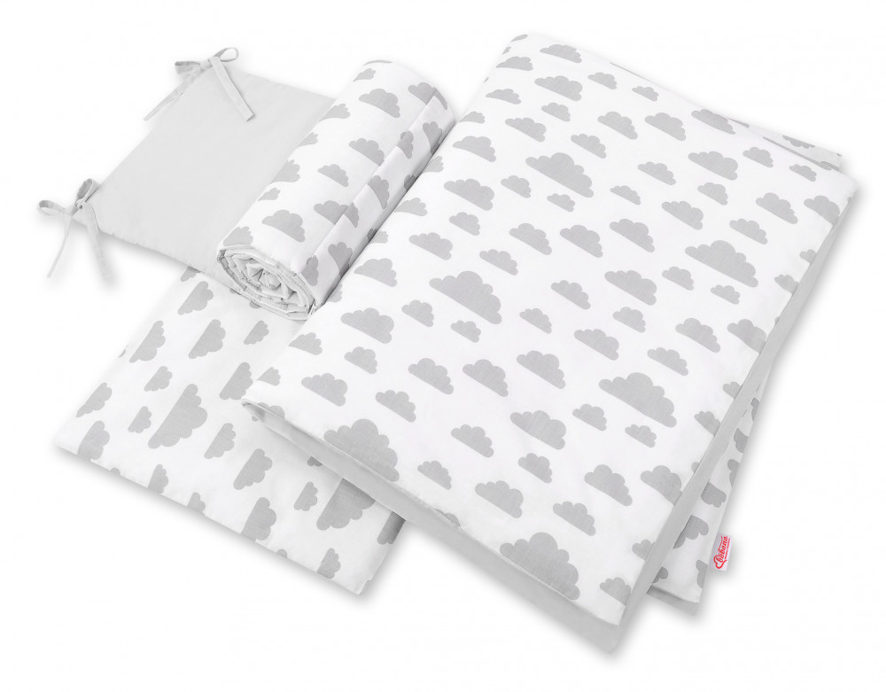 BabyLion Prémium 3 részes ágyneműhuzat szett - Szürke felhők