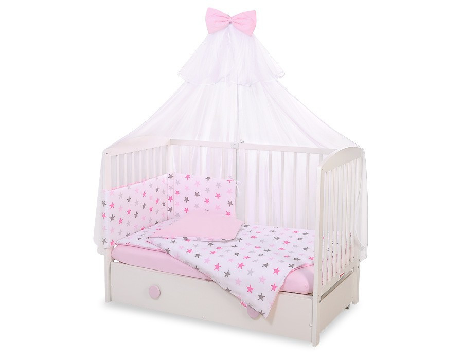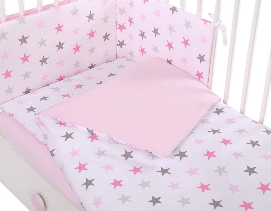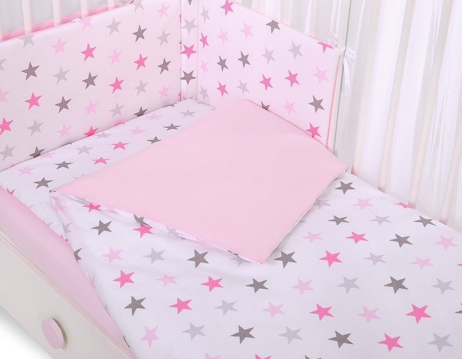 BabyLion Prémium 5 részes ágyneműhuzat szett - Rózsaszín csillagok