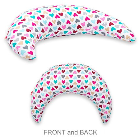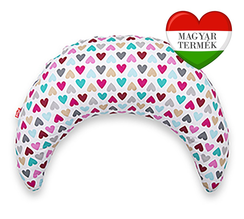 Scamp Félhold szoptatós párna pamutvászon huzattal - Színes szívecskék
