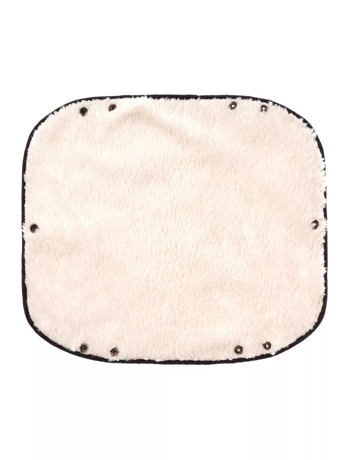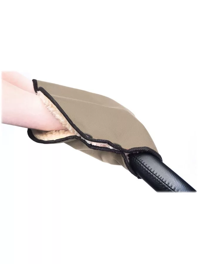 Kézmelegítő babakocsira. Anyaga: külső réteg 100% poliészter, belső réteg 60% poliészter, 40% akril. A babakocsi tolókarjára csatolható kézmelegítő mérete 40x22 cm. A kocsihoz patentok segítségével csatolható.