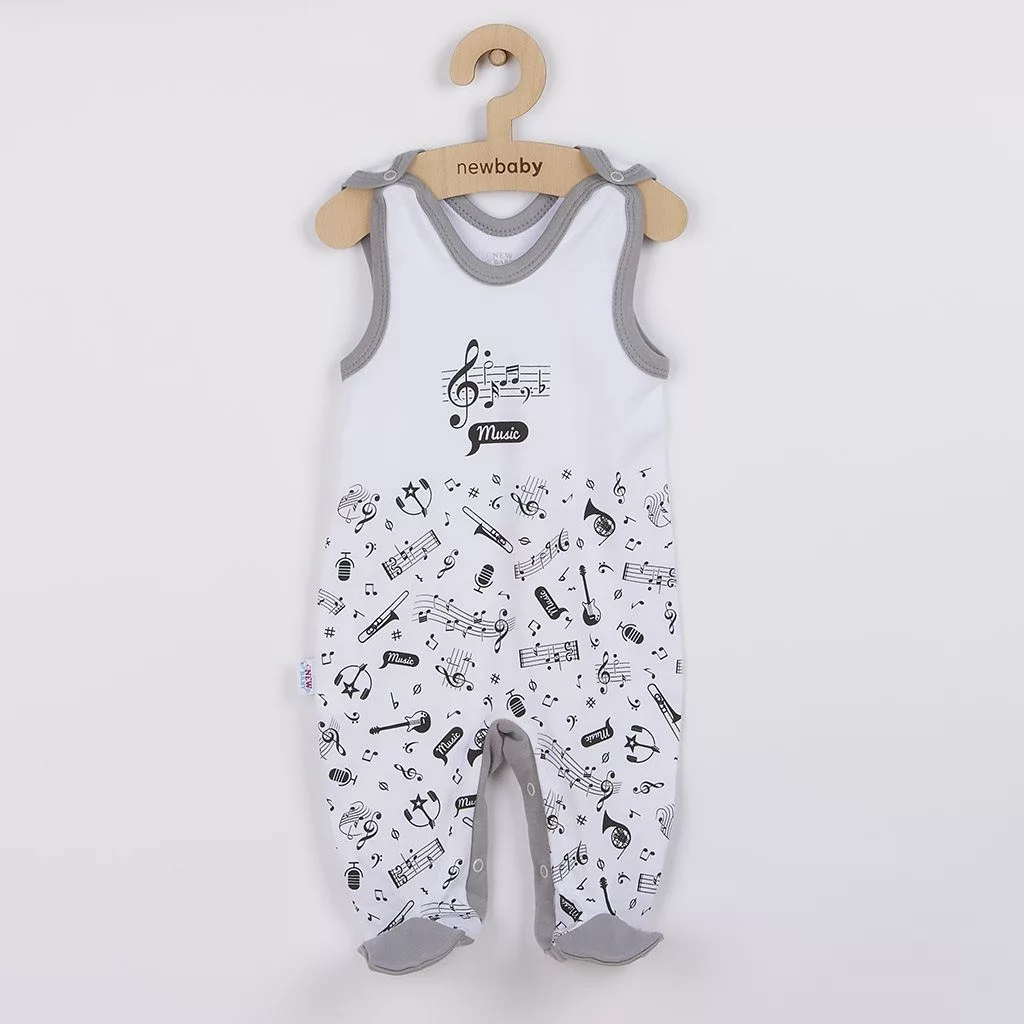Eredeti, divatos pamut baba rugdalózó New Baby Music. A rugdalózó egyszínű, hangjegyekkel és felirattal Music díszitve. Az alsó része hangjegyekkel és hangszerekkel díszitve. Vállnál és az üllepénél patentos, ami megkönnyíti a baba öltöztetését és pelenkázását. Puha minőségi anyagból készült, amibe a baba kényelmesen fogja érezni magát. Lányoknak és fiúknak is alkalmas. Anyaga 100% pamut. Mérete: mellbőség kb 19 cm, szárhossz kb 13 cm, hossz váltól számítva kb 45 cm.