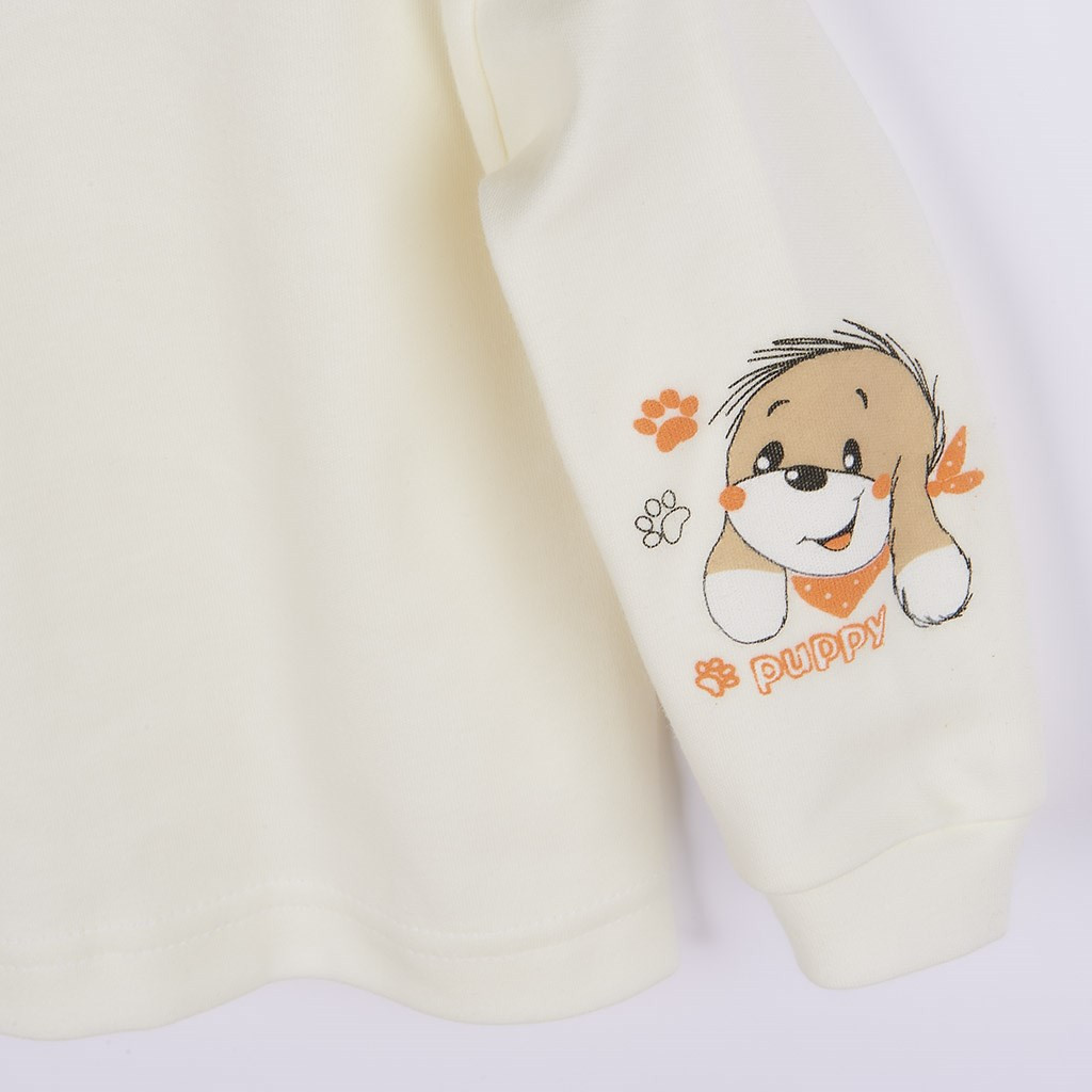 Baba pamut 2-részes együttes New Baby. Kabátkát és rugdalózót tartalmaz. A rugdalózó aranyos képpel díszítve. Vállnál és az ülepénél patentos. A kabátka egyszínű és az ujja képpel díszítve. Teljes hosszában patentos. Puha minőségi anyagból készült. Anyaga: 100% pamut. A rugdalózó méretei: mellbőség cca 45 cm, teljes hossz cca 52 cm, szárhossz cca 20 cm.