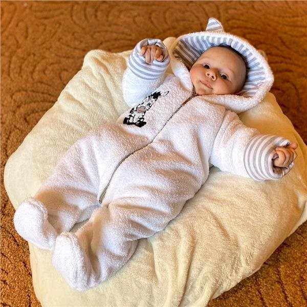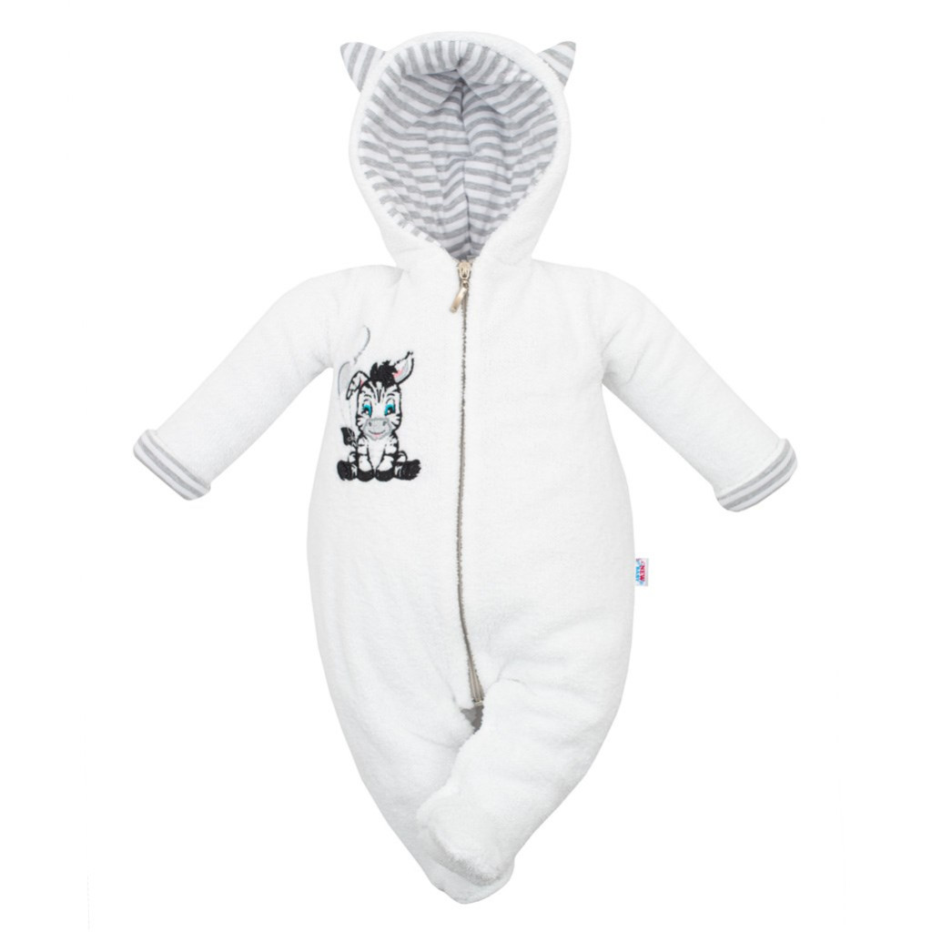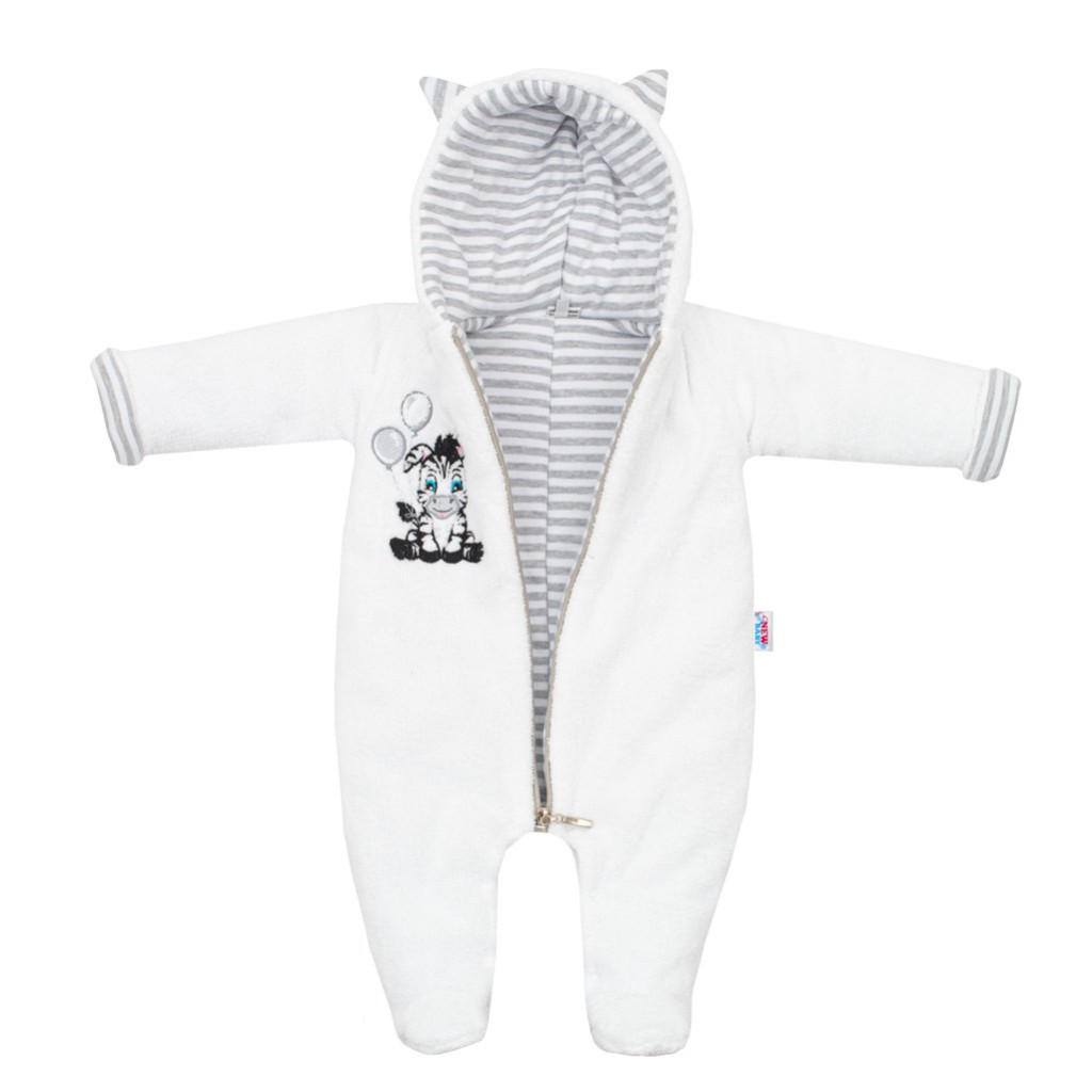 Baba téli kezeslábas kapucnival New Baby Zebra, kisbabák számára. Szép, meleg, eredeti és praktikus. A kezeslábas aranyos zebra képpel és csíkos béléssel rendelkezik. Teljes hosszában cipzáros. Nagyon kellemes és puha Welszoft anyagból készült. Anyag: 100% poliészter-wellsoft, bélés 100% pamut, töltet: antiallergén szál.