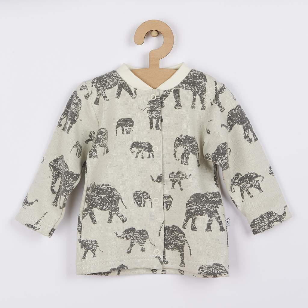 Baba kabátka Baby Service Elefánt kisbabák számára. A kabátka érdekes elefántos mintával díszítve. Teljes hosszában patentos. A kabátka vastagabb, őszi és téli napokra alkalmas. A kollekció nagyon kellemes, puha és minőségi anyagból készült. Anyag: 65% pamut, 35% poliészter.
