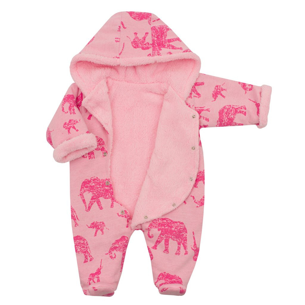 Téli baba kezeslábas kapucnival Baby Service Elefánt rózsaszín