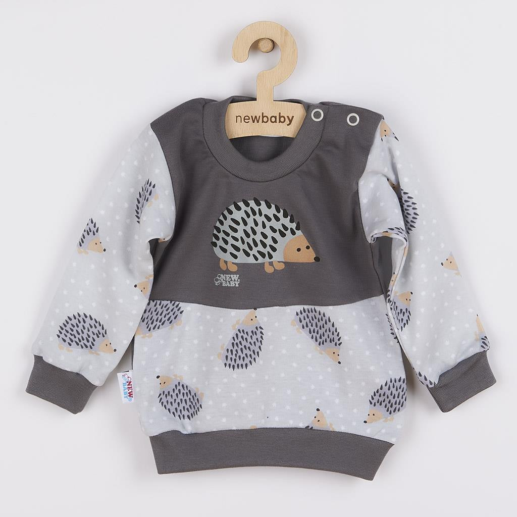Baba pamut hosszú ujjú pulóver New Baby Süni. A pulóver aranyos süni képpel díszítve, az ujja és az alsó része mintás. Vállnál patentos. Nagyon kellemes és kiváló minőségű anyagból készült. Anyaga: 100% pamut.