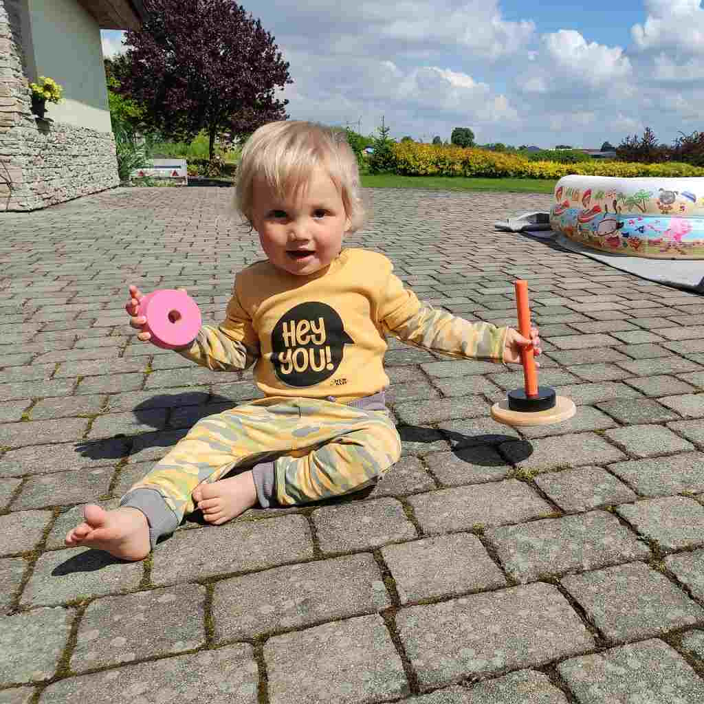 Baba pamut hosszú ujjú póló New Baby With Love kisbabák számára. A póló felirattal Hey You! és szürke szegéllyel díszítve. Vállnál patentos. Nagyon kellemes, puha és kiváló minőségű anyagból készült. Anyaga: 100% pamut.