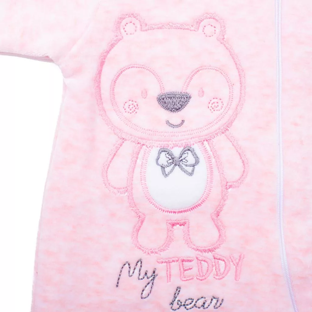 Praktikus plüss baba kezeslábas kapucnival New Baby Sweetheart. Az overál aranyos maci képpel díszítve. Nagyon minőségi anyagból készül, amely garantálja a baba melegét és kényelmét. Nagyon pontosan varrott és pamut béléssel van kibélelve. Teljes hosszában cipzáras rögzítés. Anyaga: 80% pamut, 20% poliészter, bélés: 100% pamut.