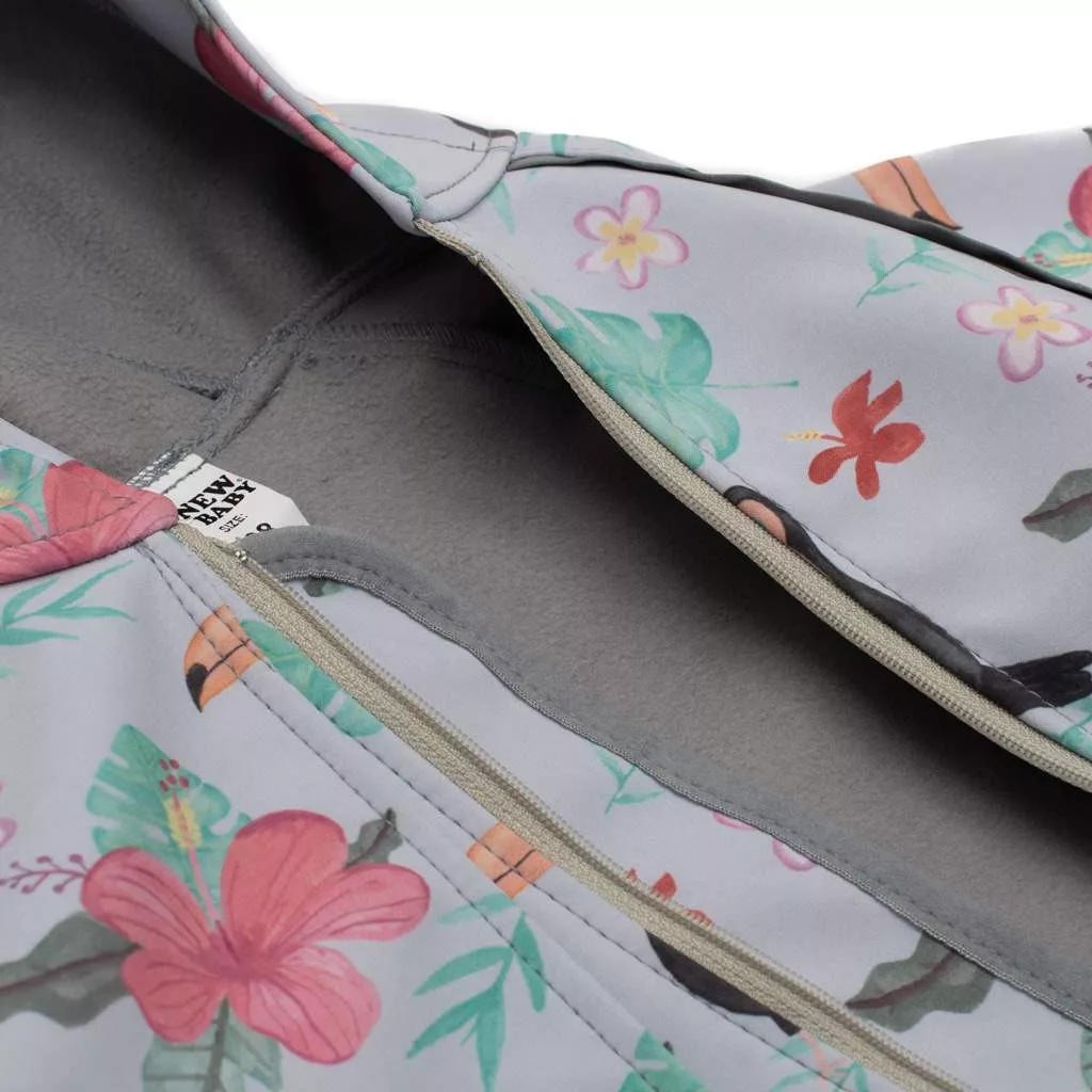 Divatos softshell baba kezeslábas New Baby. Az overál aranyos gyermek mintával díszítve. Minőségi softshell anyagból készül. Az anyag sima, rugalmas, puha és kellemes tapintású. Bizonyos fokig vízálló, nem szívja fel a vizet és ellenáll a szennyeződéseknek. Teljes hosszában cipzáros, ami megkönnyíti a baba öltöztetését és pelenkázását. A cipzár teljes hosszában szövetbéléssel van ellátva. Az overál praktikus kapucnival van ellátva, szélesebb rugalmas szegéllyel a kezén és a lábszárán. Az overál belső része polar anyagú, ami növeli a viselési kényelmet és biztosítja a meleget. Az ujjak fényvisszaverő csíkokkal rendelkeznek. A softshell overál alkalmas sportruházatként, szélálló és lélegző tulajdonságokkal. A baba nagyon kellemesen fogja érezni magát benne.