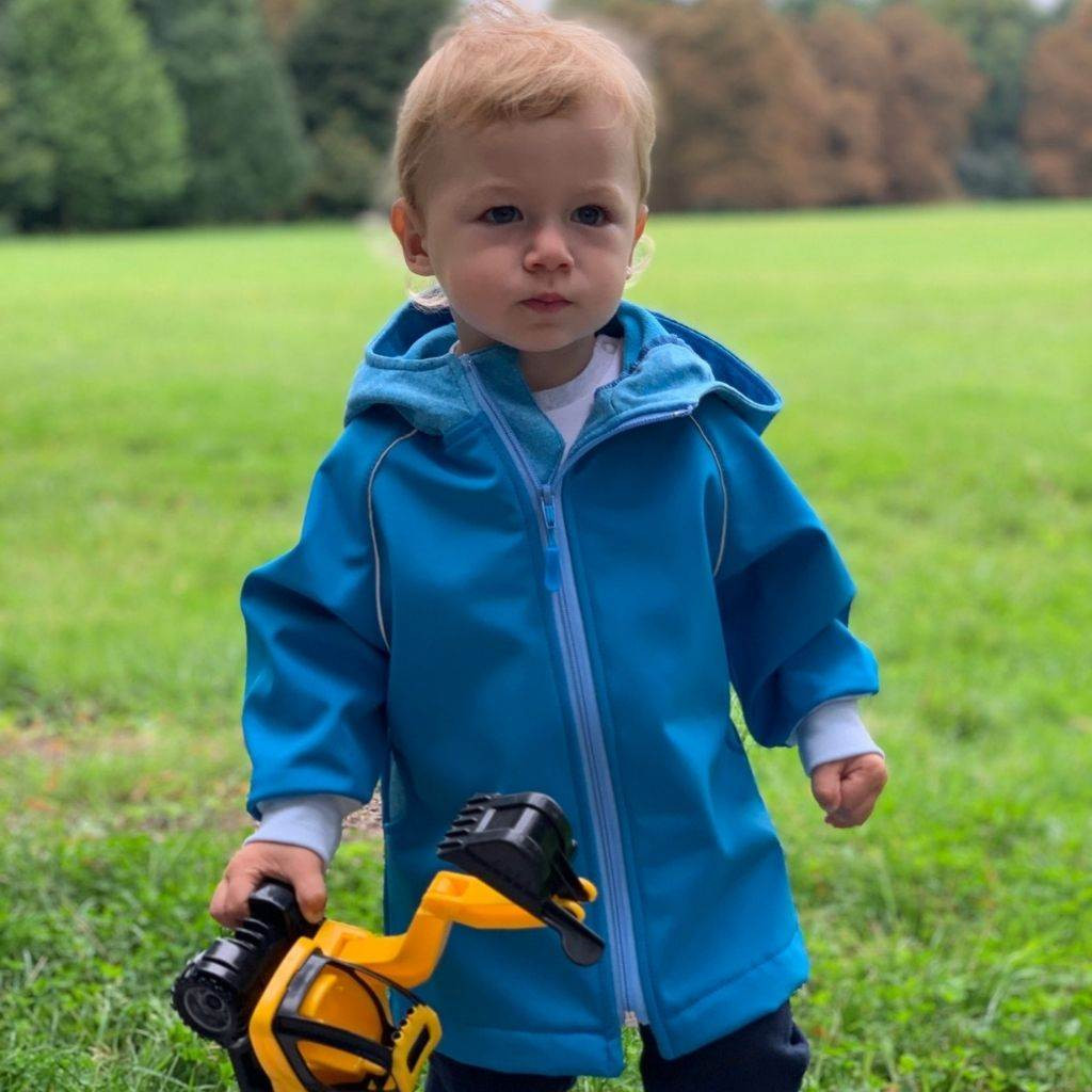 Divatos softshell baba kabát New Baby. Minőségi softshell anyagból készül. Az anyag sima, rugalmas, puha és kellemes tapintású. Bizonyos fokig vízálló, nem szívja fel a vizet és ellenáll a szennyeződéseknek. Teljes hosszában cipzáros, ami megkönnyíti a baba öltöztetését. A cipzár teljes hosszában szövetbéléssel van ellátva. A kabát praktikus kapucnival van ellátva. A kabát belső része polar anyagú, ami növeli a viselési kényelmet és biztosítja a meleget. Az ujjak fényvisszaverő csíkokkal rendelkeznek. A softshell kabát alkalmas sportruházatként, szélálló és lélegző tulajdonságokkal rendelkezik. A baba nagyon kellemesen fogja érezni magát benne.
