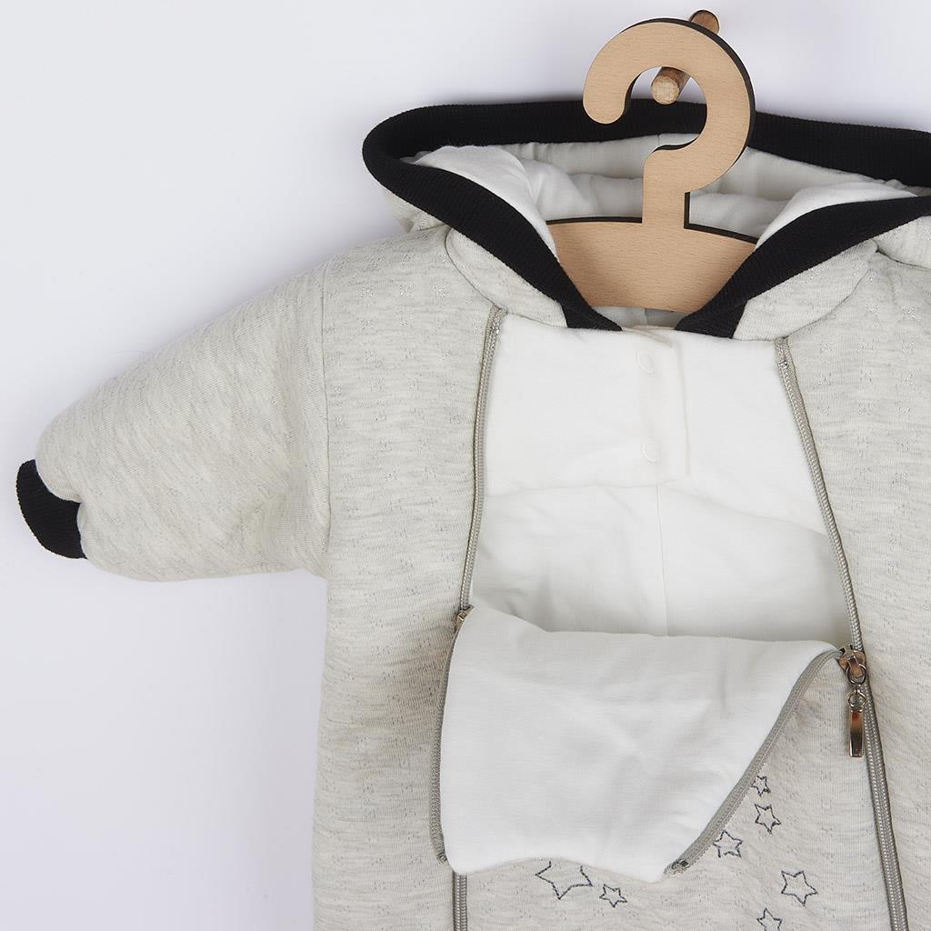 Eredeti és stílusos baba téli kezeslábas kapucnival Koala Star Vibes, kisbabák számára. Teljes hosszában a két oldalán cipzáros, ami megkönnyíti a baba öltöztetését és pelenkázását. Nagyon kellemes és puha anyagból készült, amelyben a baba nagyon kényelmesen fogja érezni magát. A kezeslábas teljesen bélelt pamut béléssel. A bélés a ruházat fontos része, növeli a ruha tartósságát. Ezenkívül a kezeslábas antiallergén szállal van tőltve, ami növeli a meleget. Ideális csecsemőknek télen és ősszel. A divatos dizájnak köszönhetően a kollekcióba a baba nagyon aranyos lesz. Anyaga: felső réteg 77% pamut, 20% poliészter, 3% lurex szál, bélés 100% pamut, antiallergén szál töltet-100% poliészter-120g / m2.