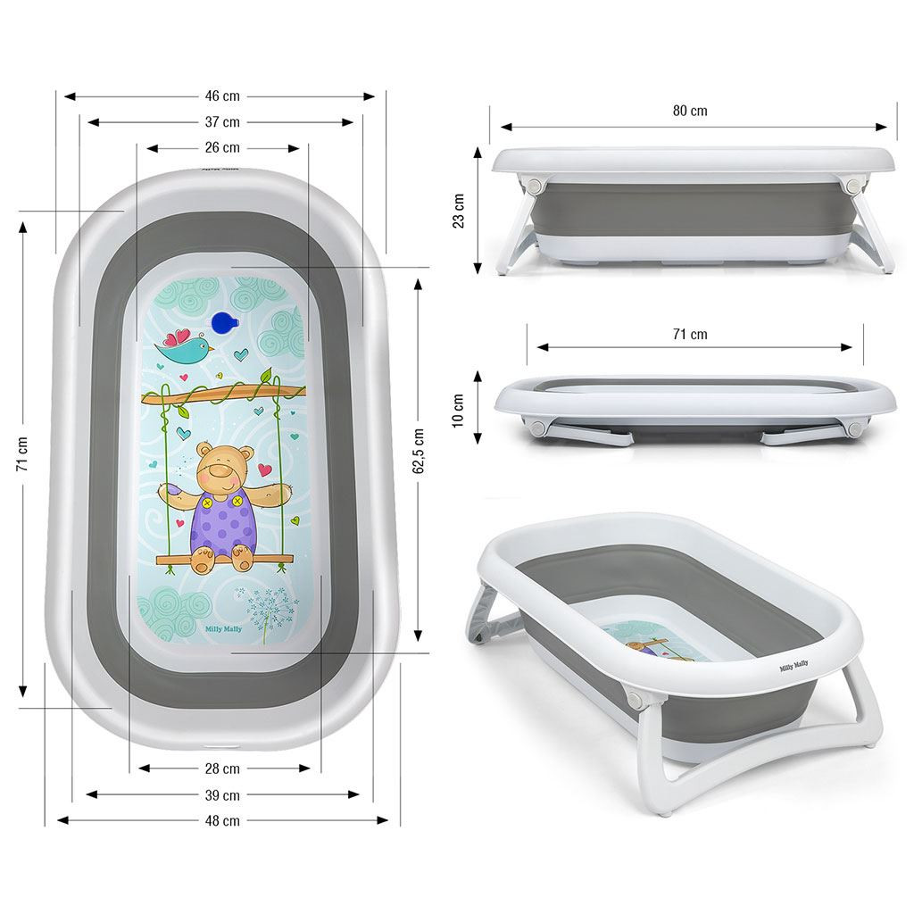 Milly Mally Aqua összecsukható babakád leeresztővel szürke