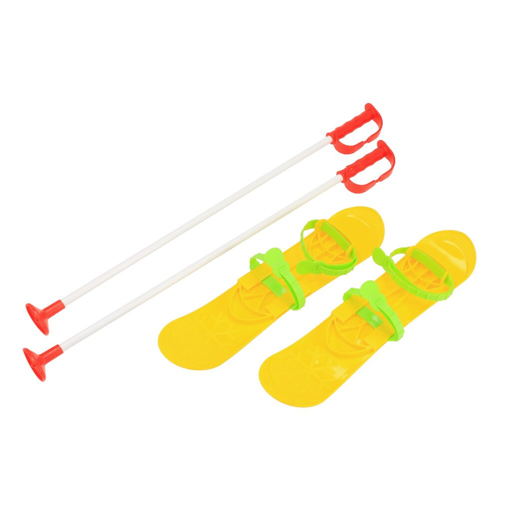 Gyermek sílécek kötéssel és botokkal Baby Mix BIG FOOT sárga