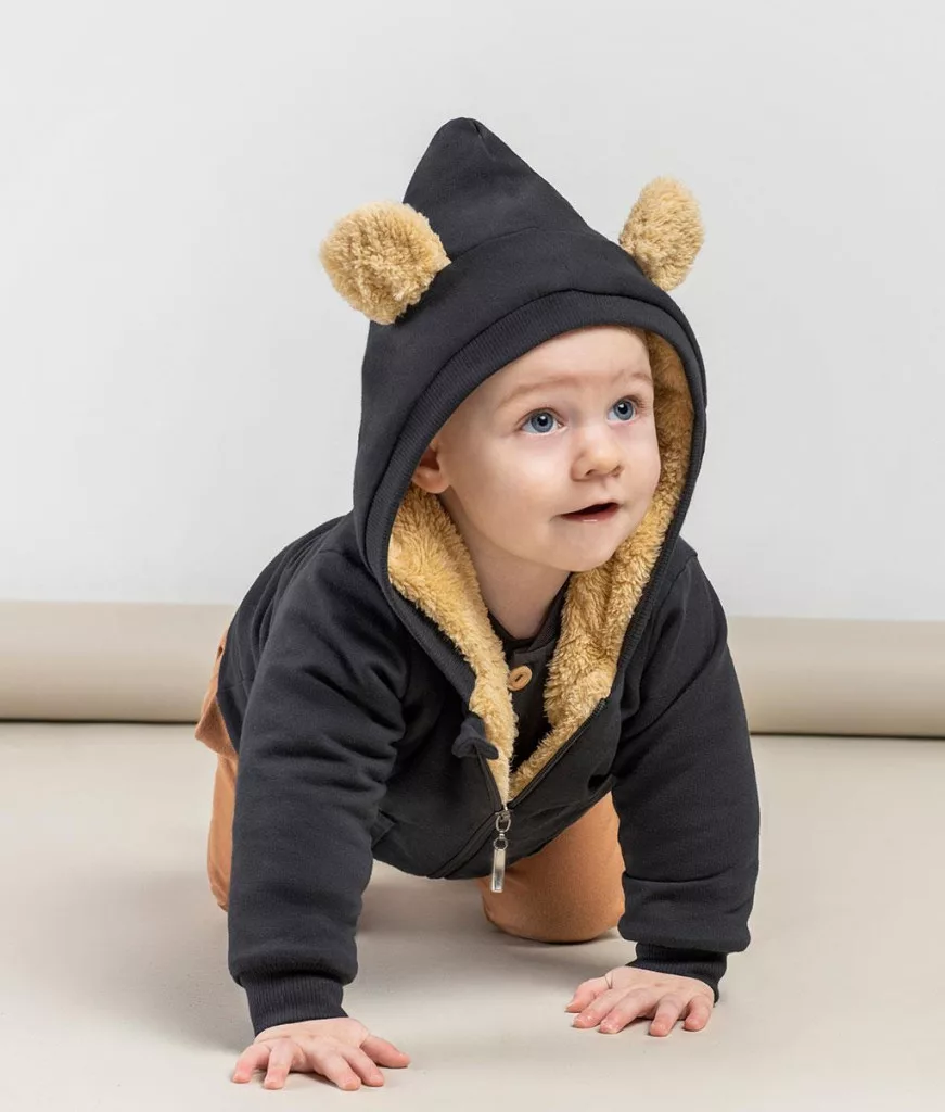 Gyönyörű őszi Nicol Miki baba melegítő felső. A füles kapucnis kabát kiváló minőségű anyagból készült, amely meleget és kényelmet biztosít a babának. A kapucnis felső ún. Wellsoft meleg anyaggal van bélelve. A kabát hátsó része stílusos hosszított fazonú. A kapucni bélése ún. Wellsoft meleg anyagból készült. Az ujjak szélesebb, rugalmas szegélyben végződnek. Teljes hosszában cipzáras, ami megkönnyíti az öltöztetést. Ötletes, minőségi és praktikus. Pontosan ilyen ez az őszi baba melegítő felső. Anyagösszetétel: kabát: felső réteg: 95% pamut, 5% elasztán, bélés: 90% poliészter-wellsoft, 10% pamut.