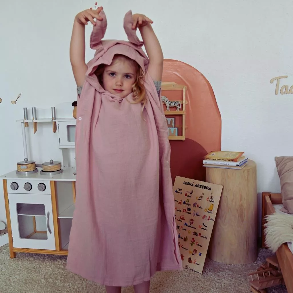 pihekönnyű, szellős és nagyszerű nedvszívó. A poncsó megvédi a gyermeket a hidegtől, és puha törülközőként is használható. Laza, egyedi fazonjának és aranyos füleinek köszönhetően