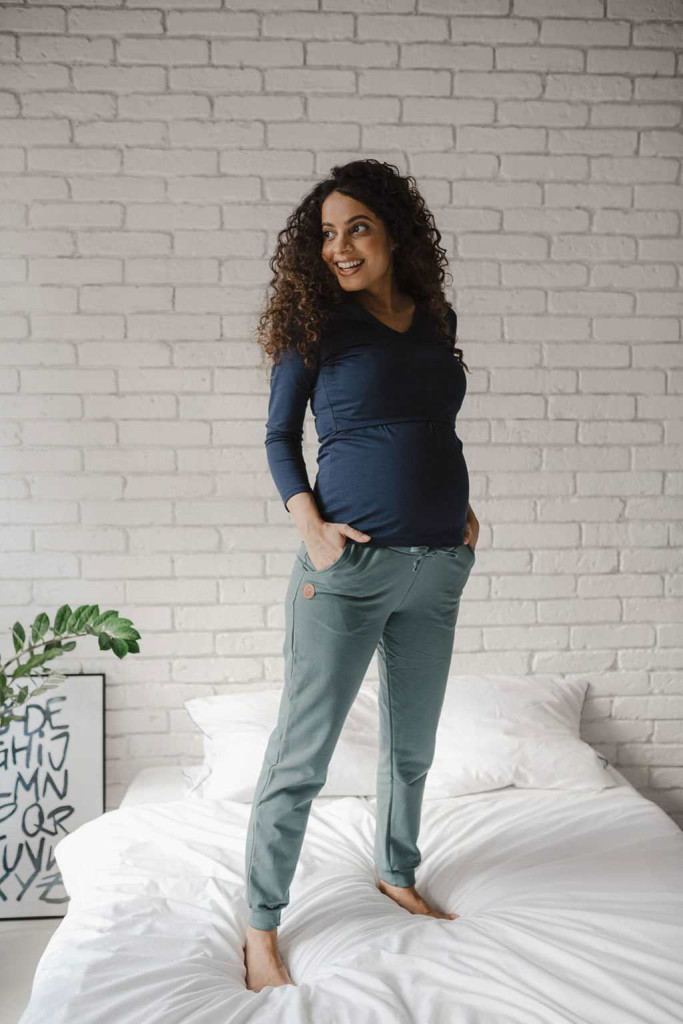 Kismama és szoptató blúz Milk Shirt milk & love V-kivágással. A Milk Shirt szoptatós blúz rendkívül kényelmes "hurkos" megoldással rendelkezik, amely kinyitva diszkrét nyílást hoz létre, amelyen keresztül még kedvezőtlen helyzetekben is szabadon etetheti babáját, mint például: buszmegálló, bevásárlóközpont vagy étterem. A kismama blúz kiváló minőségű pamutból készült elasztán hozzáadásával , aminek köszönhetően nem nyúlik meg, és mosás után visszanyeri eredeti formáját - ezért jól mutat még várandósság után is, és szoptatás alatt is használható.