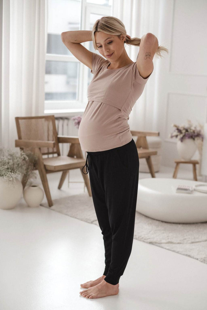 Kismama és szoptató blúz Milk Shirt milk & love rövid ujj bézs
