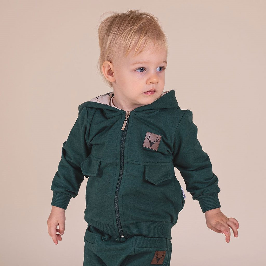 Baba pamut pulóver kapucnival Nicol Bambi zöld