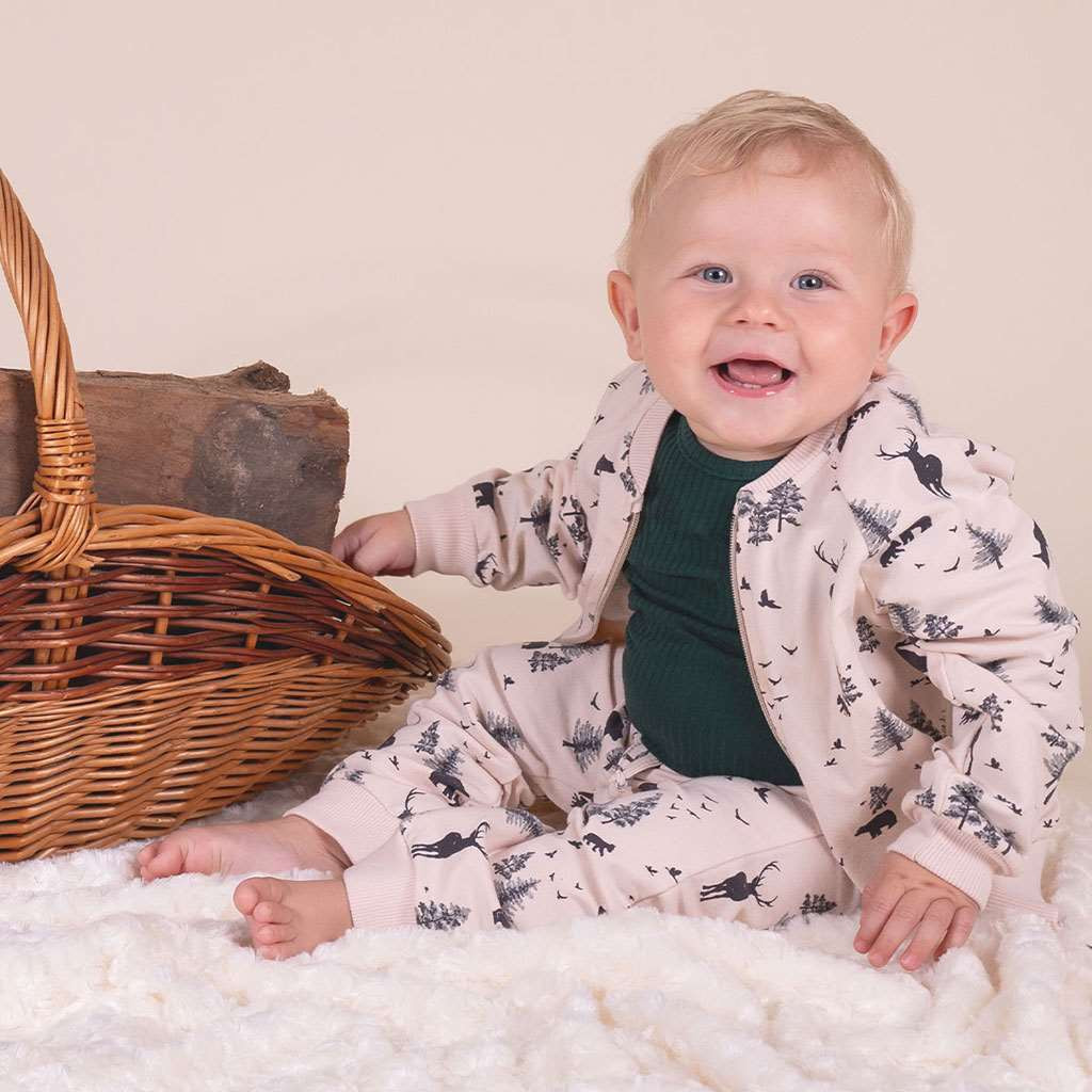 Divatos stílusos és praktikus pulóver Nicol Bambi. Erdei mintával díszítve. A pulóver teljes hosszában cipzáros, az ujjakon és a derekán rugalmas szegéllyel rendelkezik. Kényelmes anyagból készült. Anyaga: 95% pamut, 5% elasztán. OEKO-TEX STANDARD 100.
