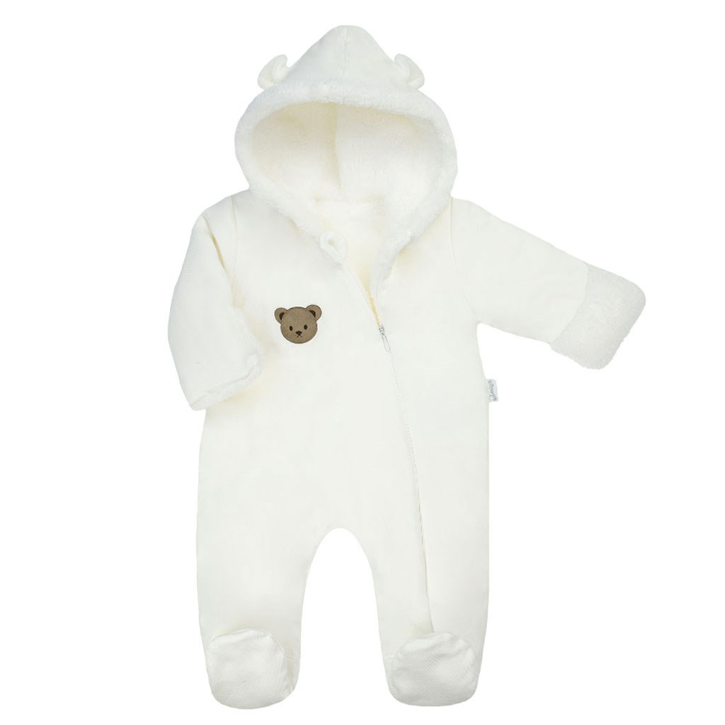 Baba téli kapucnis kezeslábas Nicol Olaf kisbabák számára. Az overal minőségi anyagból készül, amely garantálja a babának a meleget és kényelmet. Nagyon puha, kellemes tapintású , Wellsof anyaggal bélelt. Az ujjak felhajthatók, aminek köszönhetően láthatóvá válik a meleg bélés. A kezeslábas teljes hosszában az oldalán cipzáros. Anyaga: felső anyag: 95% pamut, 5% elasztán, bélés: 90% poliészter, 10% pamut-welsoft.