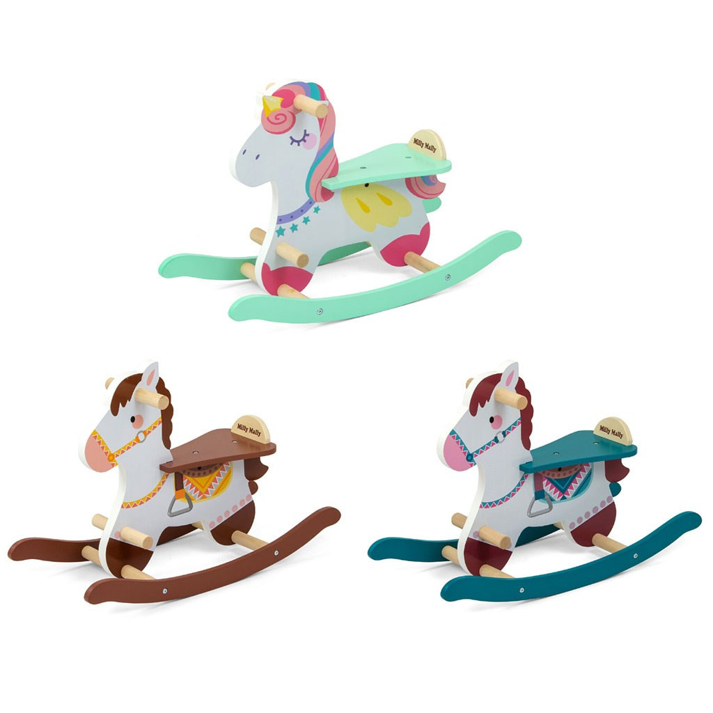 Fából készült hintaló háttámlával Milly Mally Lucky 18 barna