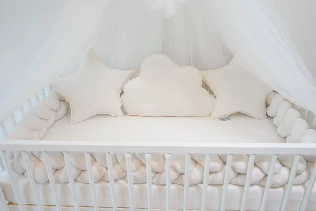 Bársony kiságy szett fonott rácsvédő + párnák Belisima ecru