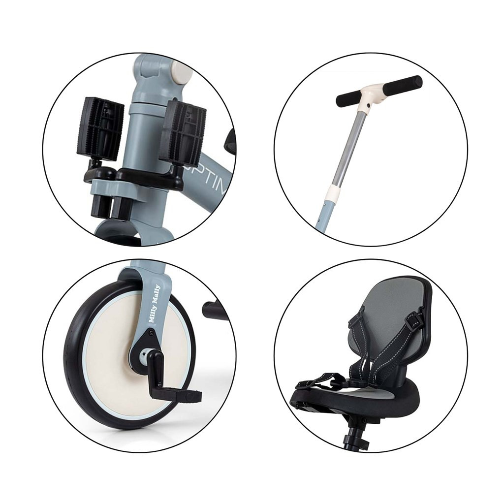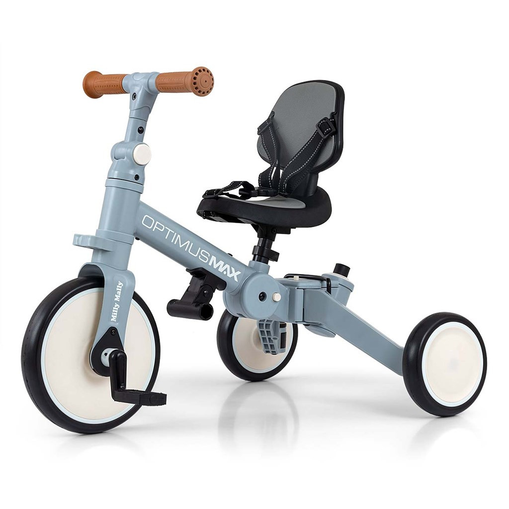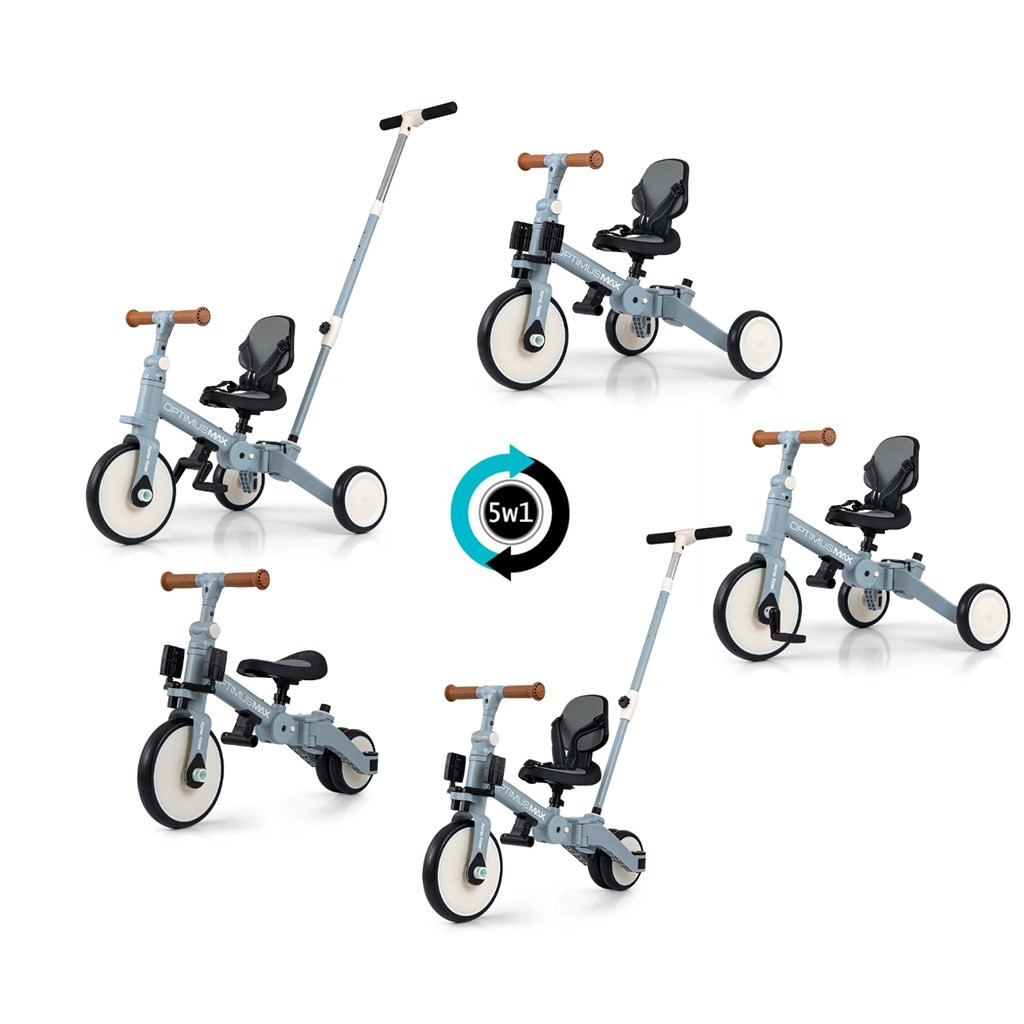 Az Optimus Max úgy lett megtervezve, hogy gyermeke első járművének egyik legjobb választása legyen. A stabil háromkerekű kialakításnak köszönhetően megfelelő biztonságot nyújt, és segíti az új készségek elsajátítását. Amikor a gyermek már elsajátította az alapokat, és nincs szüksége a szülői irányítórúdra, felszerelhetjük a pedálokat, vagy klasszikus futóbiciklire alakíthatjuk át.