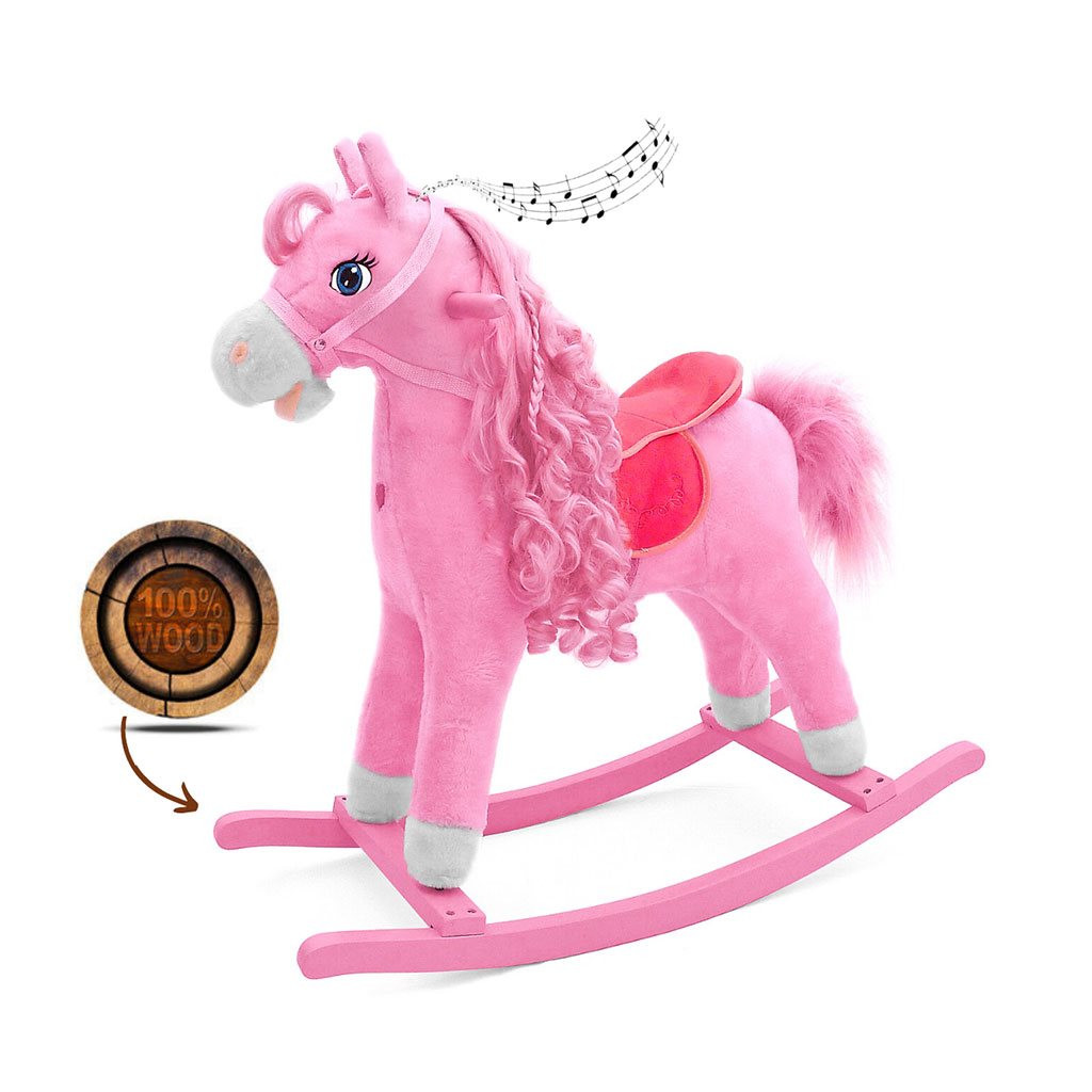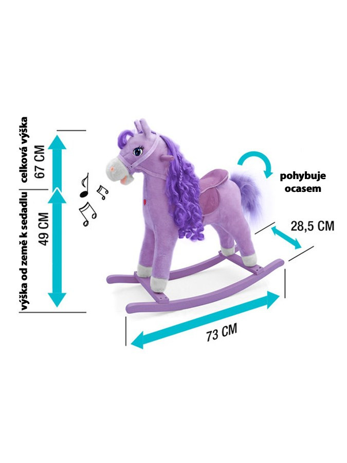 Milly Mally nem mindennapi gyönyörű hintaló. Az elem nem a csomagolás része. Jellemzői: a lovacska mozgatja a farkát és a pofiját, nyerítő hangot ad ki. Kellemes anyaga van.Nyereg, kengyel, kantár és fa foganytú tartozik hozzá. A hintázó rám leszerelhető. Az elem (3x AA) nem a csomagolás része. Terhelhetősége 30 kg. Mérete: kb. 73x28,5x67 cm.