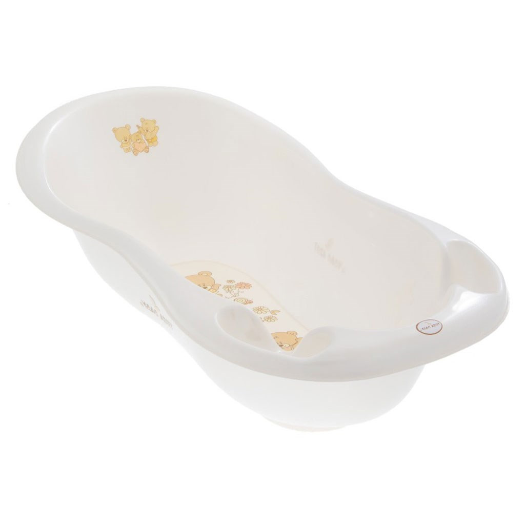 Gyerek anatómiai műanyag piskóta kád mintával. A kád hossza kb. 100 cm. 0-12 hónapos gyermekek számára ajánlott. A vízzel telített kádat ne helyezze át! A kádból a vizet először mindig engedje ki!