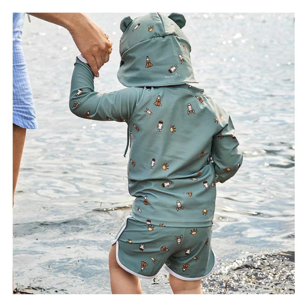 Készüljön fel a nyárra ezzel a gyönyörű Nuuroo Ludo napsapkával! Ez a világoszöld fürdőnadrág kiváló minőségű, újrahasznosított poliészterből készült, amely garantálja a hosszú élettartamot és a strapabíróságot. A gyorsan száradó anyagának köszönhetően ideális választás lehet egy tengerparti napra is. A légáteresztő kialakítás biztosítja a kényelmet, míg az UPV 50+ szűrő pedig a lehető legjobban védi a kicsik érzékeny bőrét a napsugárzástól. Az ISO 105-03:2010 tesztszabvány szerinti minősítése bizonyítja a megbízhatóságát. Kérjük, vegye figyelembe, hogy a termék mérete kissé kicsi lehet, ezért javasoljuk, hogy a szokásosnál nagyobb méretet vásárolja. Az anyagösszetétel: 82% újrahasznosított poliészter / 18% elasztán + 100% poliészter, I. osztályú minőségben.